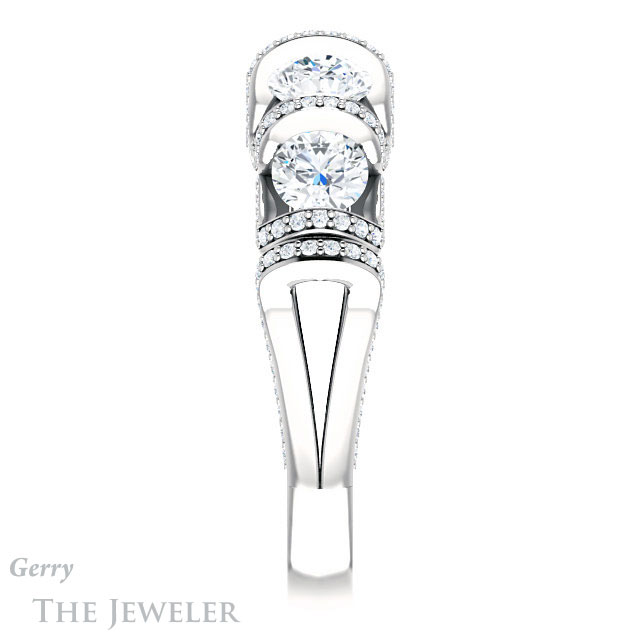 - This design can be set with your choice of certified lab grown diamond or moissanite center gem.Â