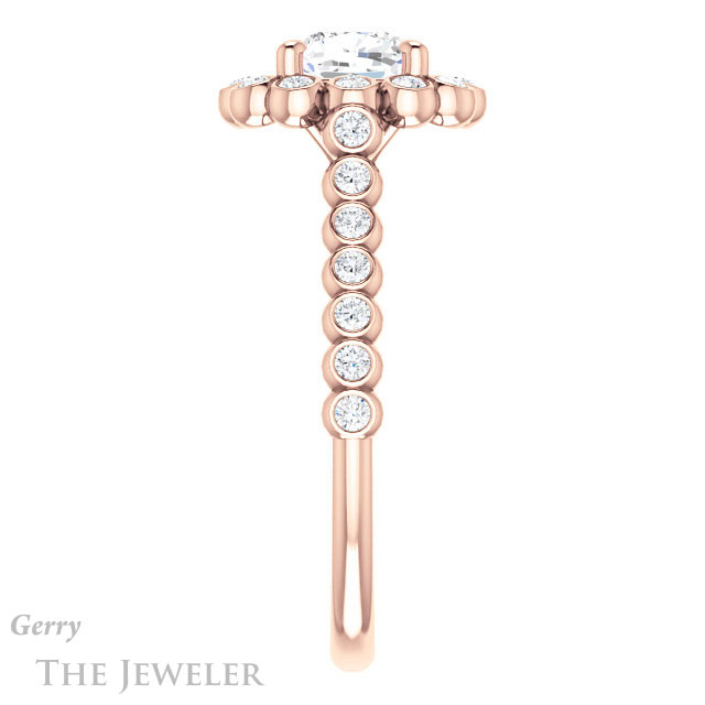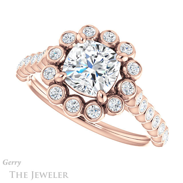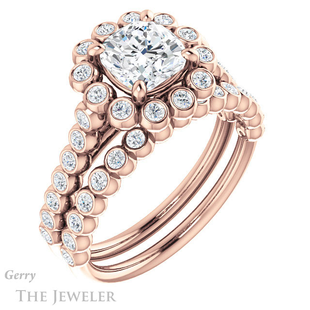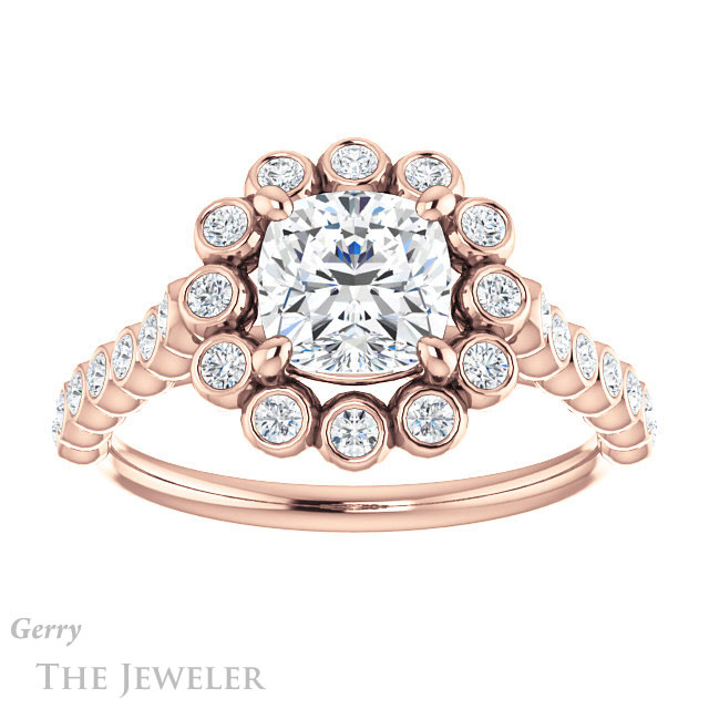- This design can be set with your choice of certified lab grown diamond or moissanite center gem.Â