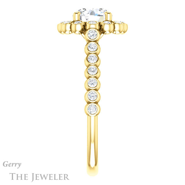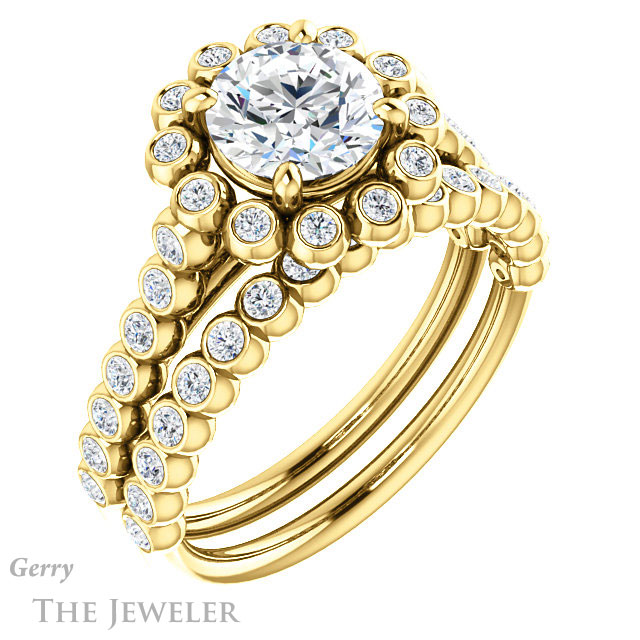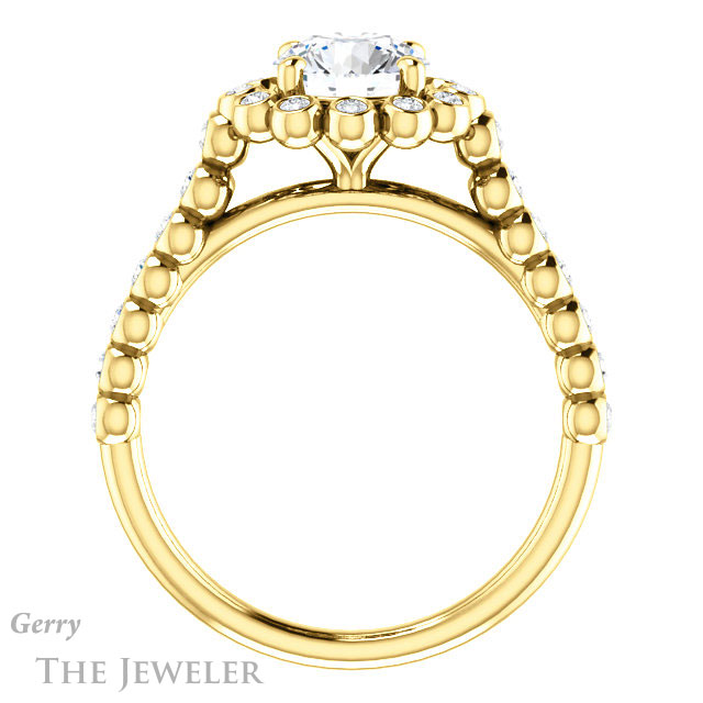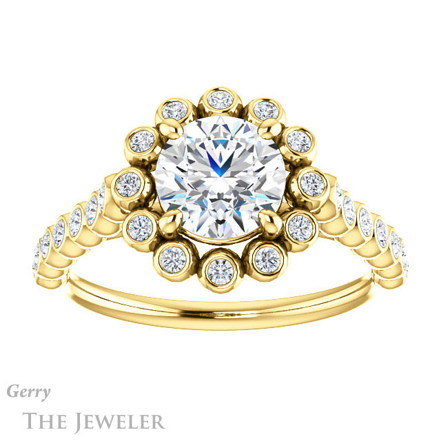 - This design can be set with your choice of certified lab grown diamond or moissanite center gem.Â