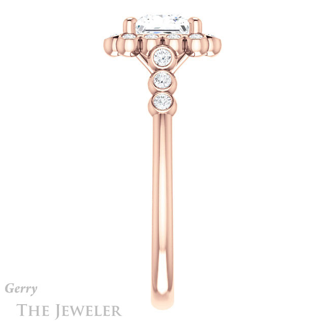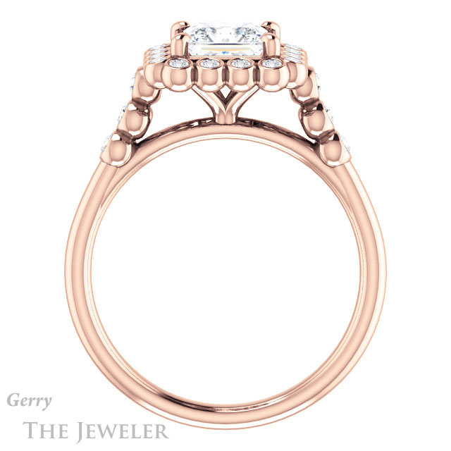 - This design can be set with your choice of certified lab grown diamond or moissanite center gem.Â