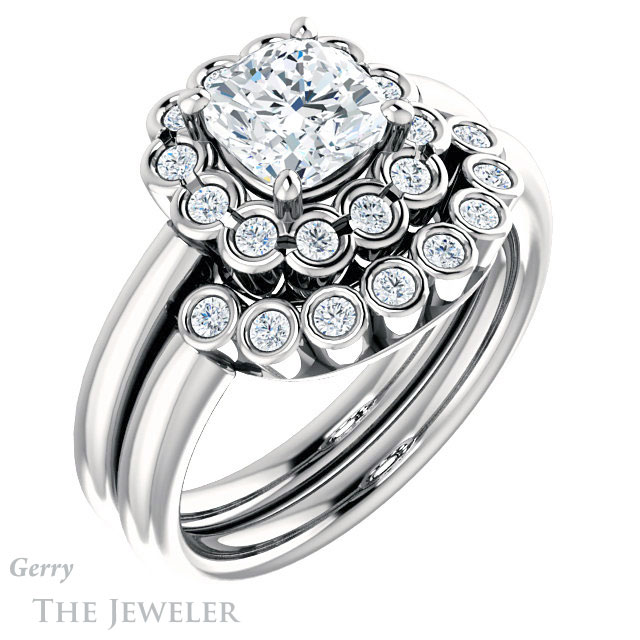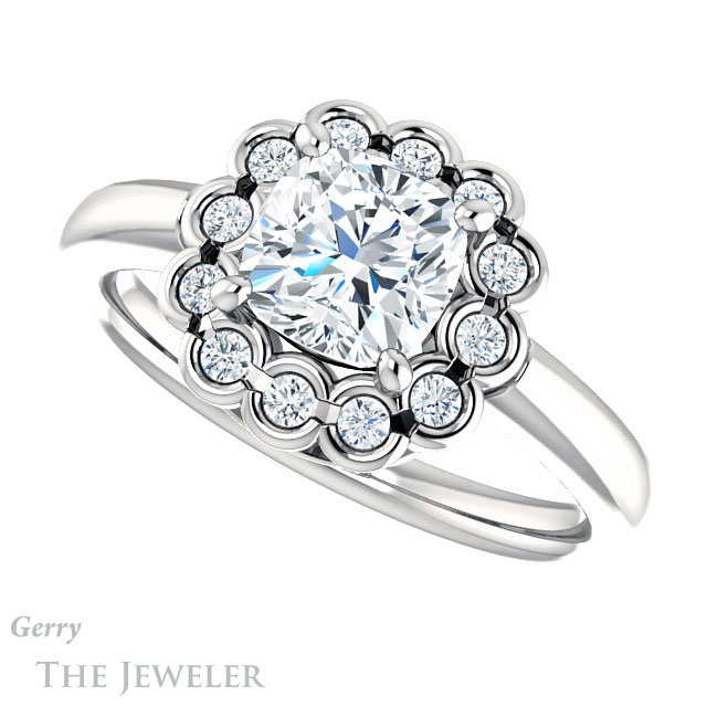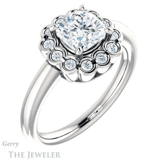 Cushion Cut Forever One Moissanite Engagement Ring #GTJ1123-cushion-fo-w