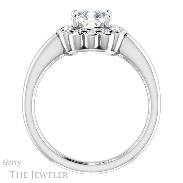 - This design can be set with your choice of certified lab grown diamond or moissanite center gem.Â