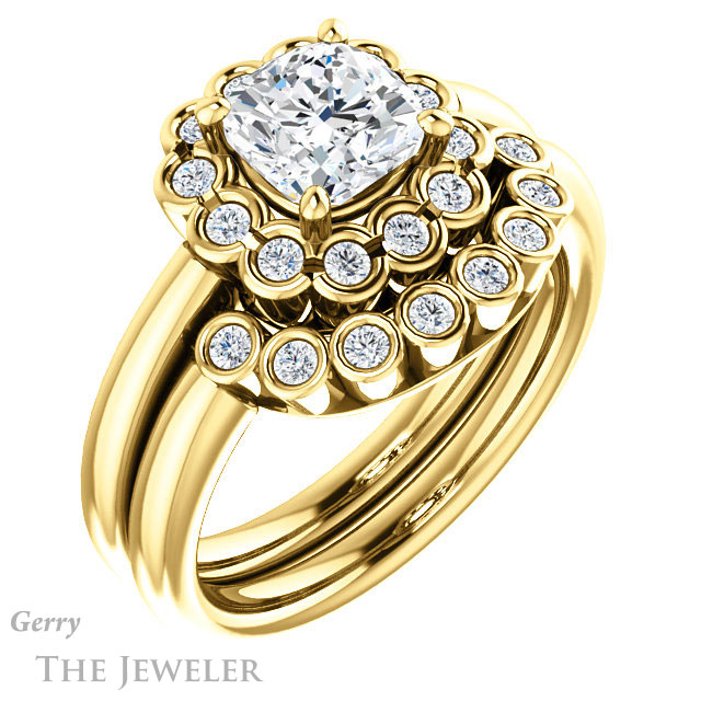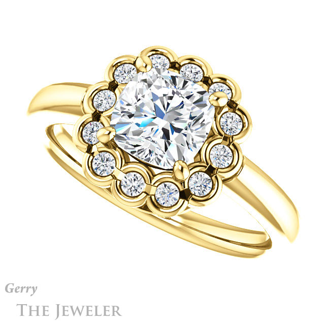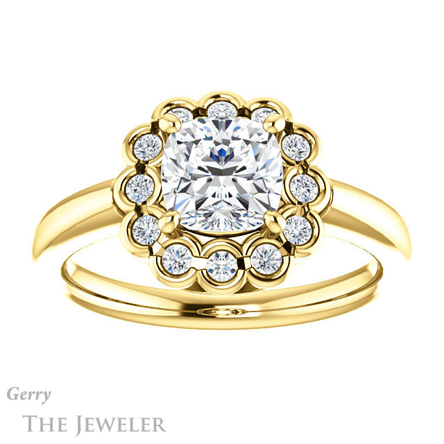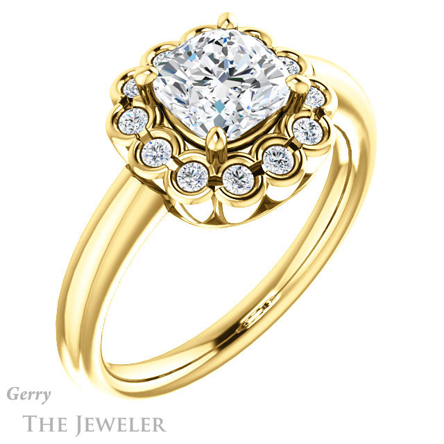 Cushion Cut Forever One Moissanite Engagement Ring #GTJ1123-cushion-fo-y
