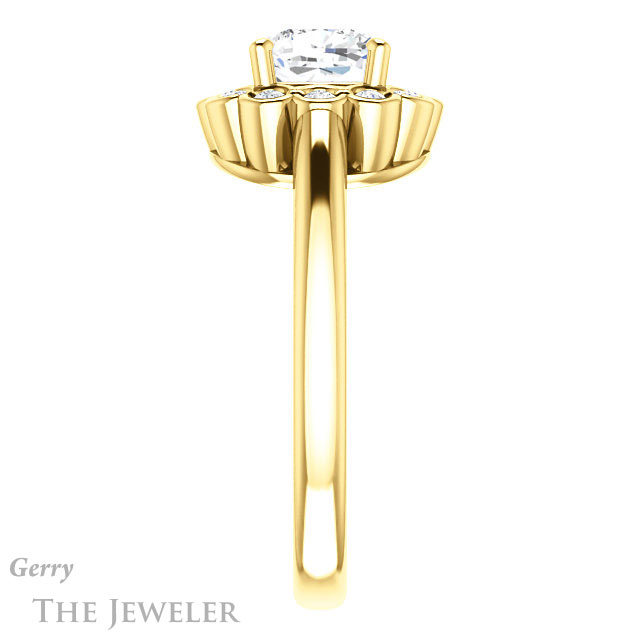 - This design can be set with your choice of certified lab grown diamond or moissanite center gem.Â