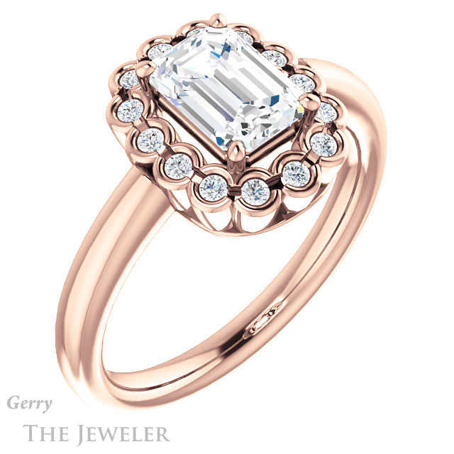 Emerald Cut Forever One Moissanite Engagement Ring #GTJ1123-emerald-fb-r