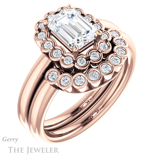 - This design can be set with your choice of certified lab grown diamond or moissanite center gem.Â