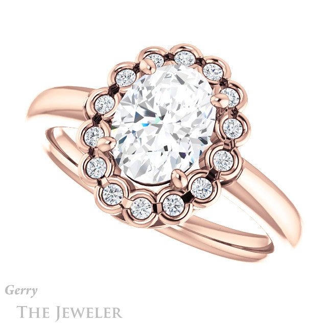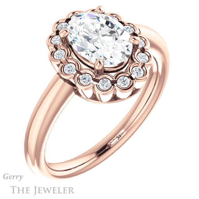 - This design can be set with your choice of certified lab grown diamond or moissanite center gem.Â
