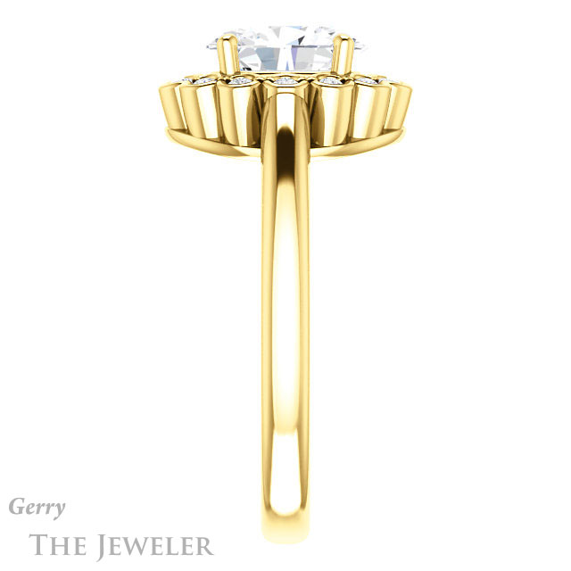- This design can be set with your choice of certified lab grown diamond or moissanite center gem.Â