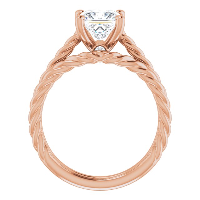 This 14k rose gold solitaire bridal set design can be custom crafted to fit your choice of princess cut moissanite.