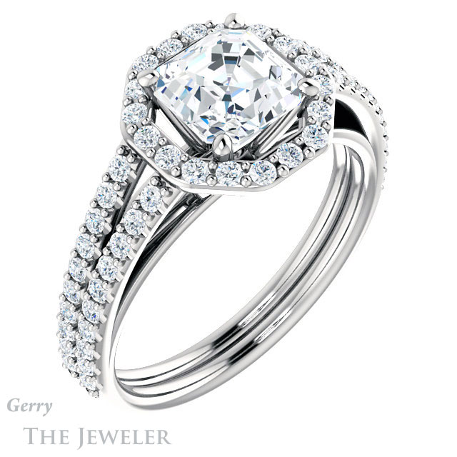 Asscher Cut Forever One Engagement Ring Setting #GTJ1139-asscher-fo-w