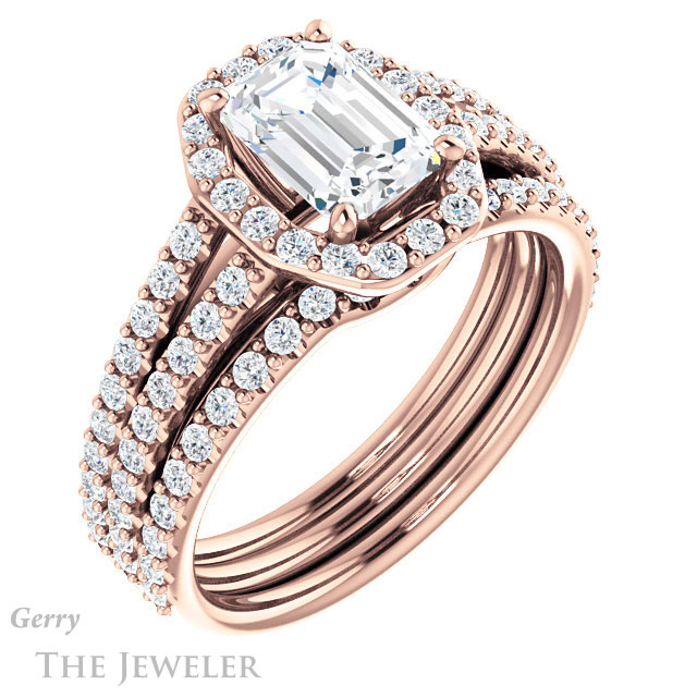 Emerald Cut Forever One Moissanite Engagement Ring #GTJ1139-emerald-fb-r