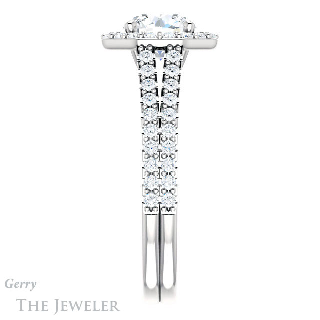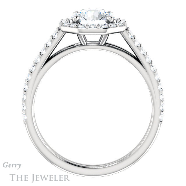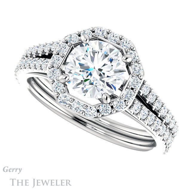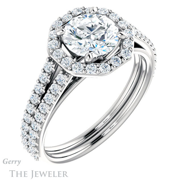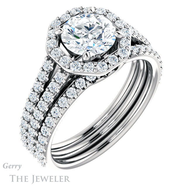 - This design can be set with your choice of certified lab grown diamond or moissanite center gem.Â