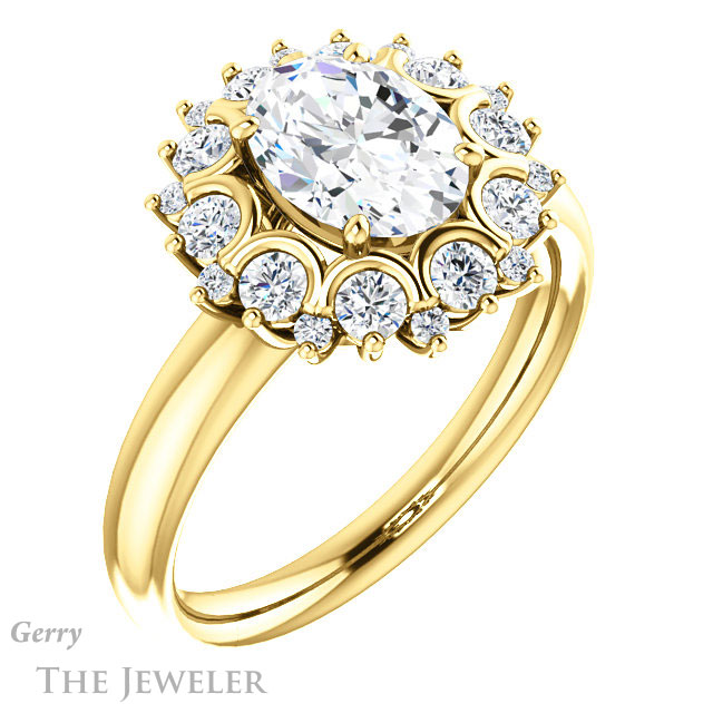 Oval Shaped Forever One Moissanite Engagement Ring #GTJ1174-oval-fo-y