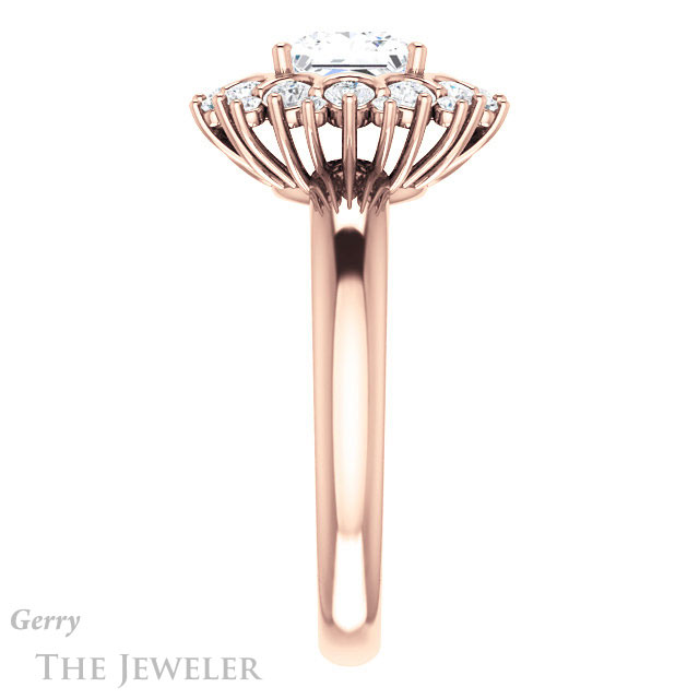 - This design can be set with your choice of certified lab grown diamond or moissanite center gem.Â