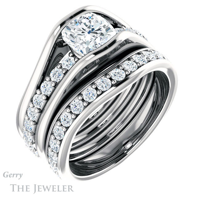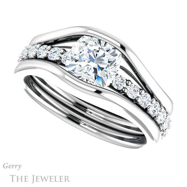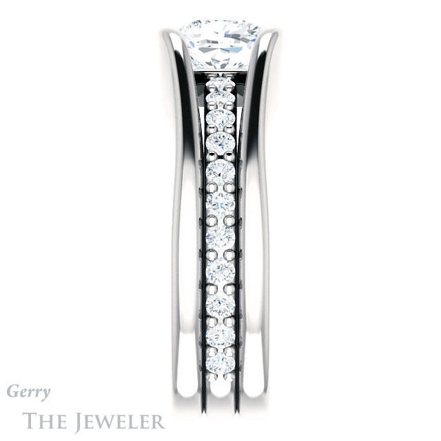 - This design can be set with your choice of certified lab grown diamond or moissanite center gem.Â
