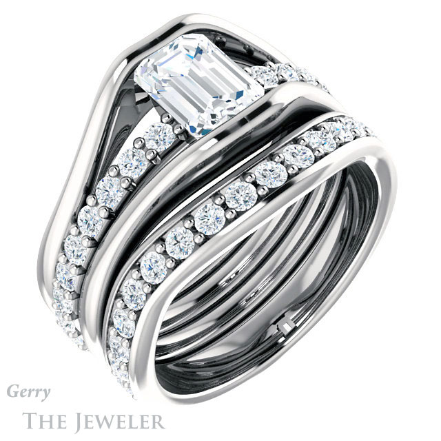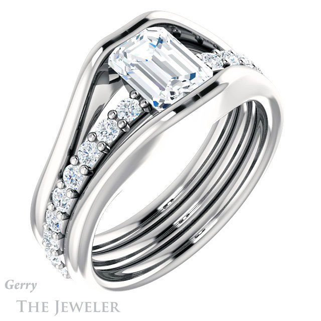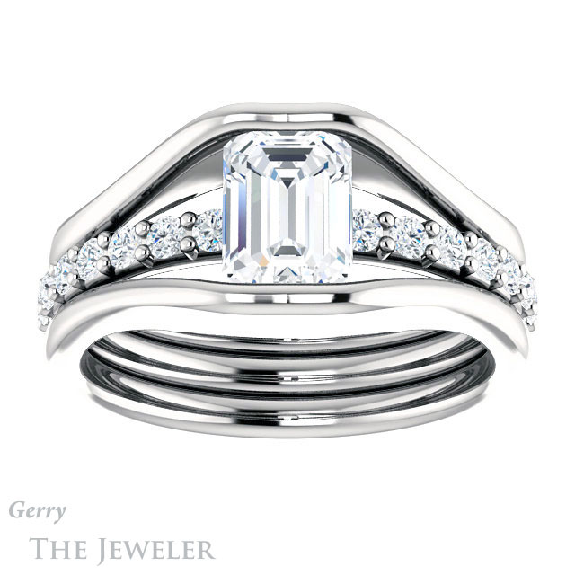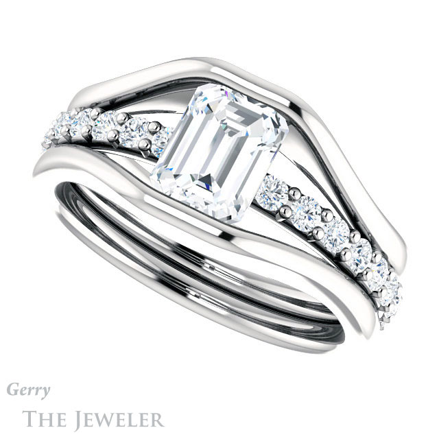 Emerald Cut Forever One Moissanite Engagement Ring #GTJ1181-emerald-fb-w