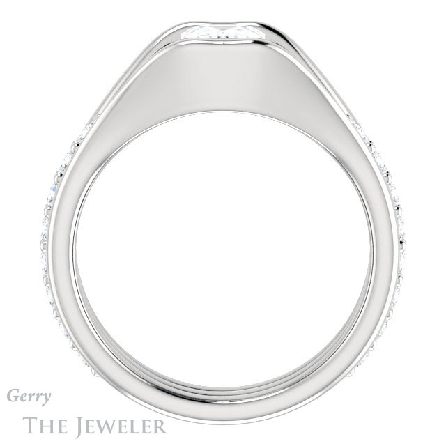 - This design can be set with your choice of certified lab grown diamond or moissanite center gem.Â