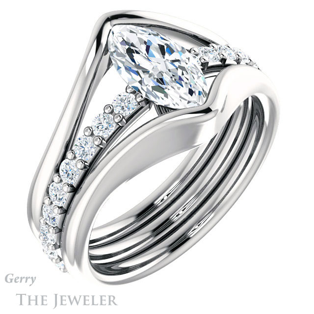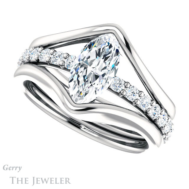 Marquise Cut Forever One Moissanite Engagement Ring #GTJ1181-marquise-fb-w