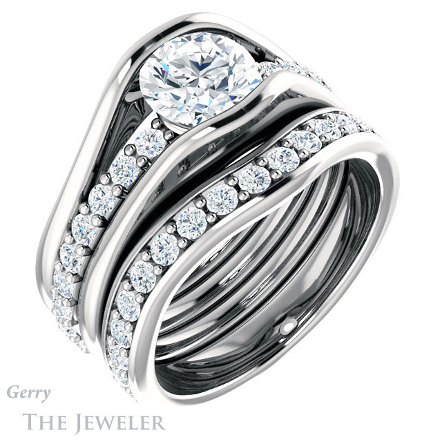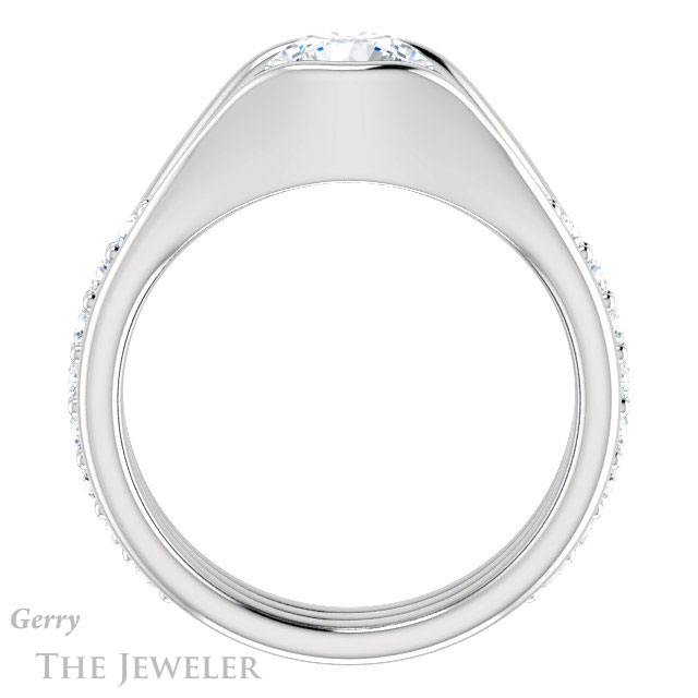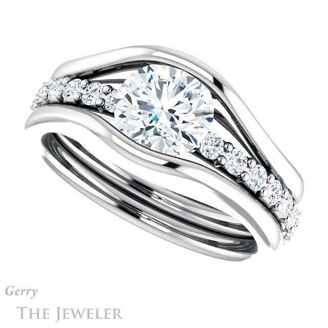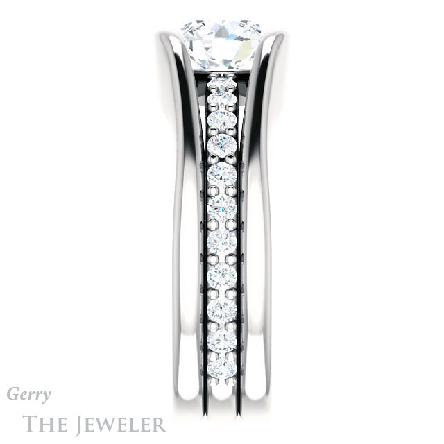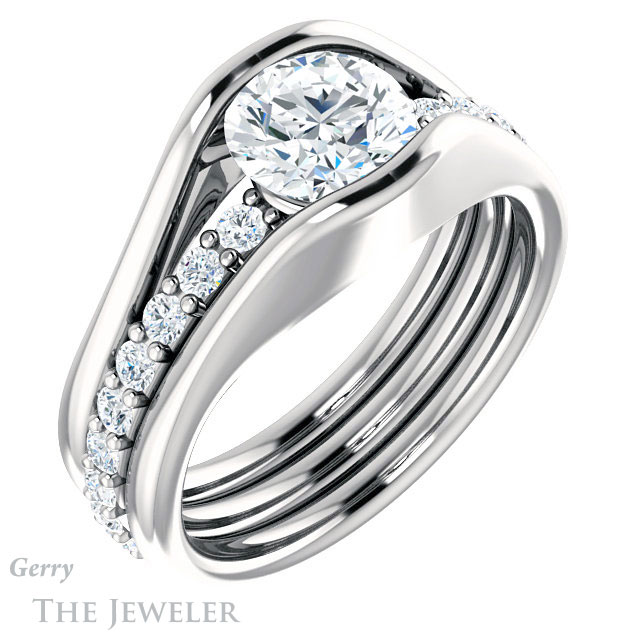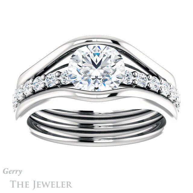 - This design can be set with your choice of certified lab grown diamond or moissanite center gem.Â