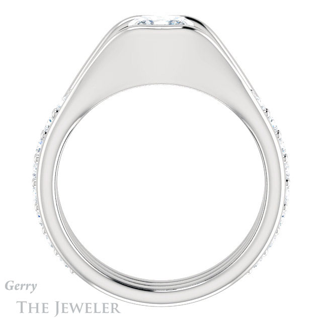 - This design can be set with your choice of certified lab grown diamond or moissanite center gem.Â