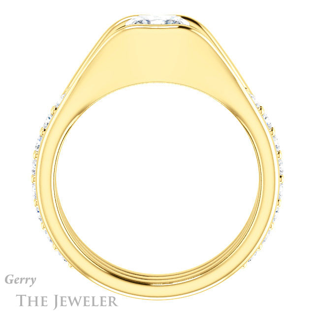 • This design can be set with your choice of certified lab grown diamond or moissanite center gem.