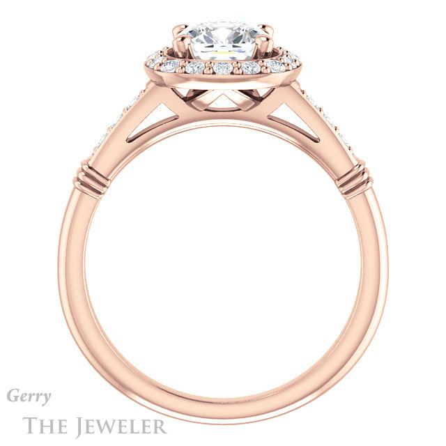 - This design can be set with your choice of certified lab grown diamond or moissanite center gem.Â