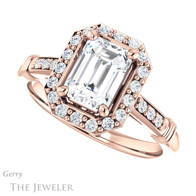 Emerald Cut Forever One Moissanite Engagement Ring #GTJ1185-emerald-fb-r