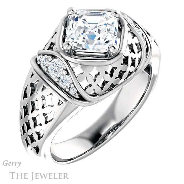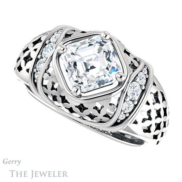 Asscher Cut Forever One Engagement Ring Setting #GTJ1186-asscher-fo-w