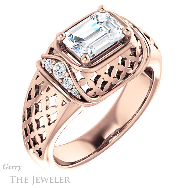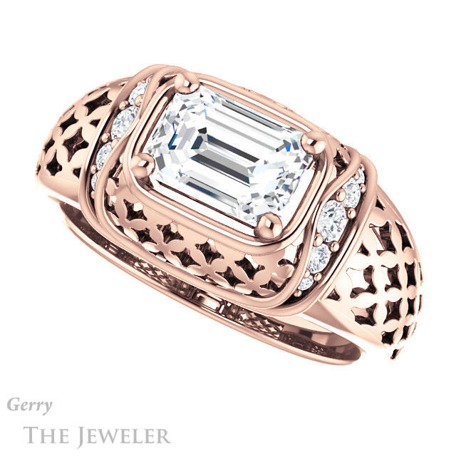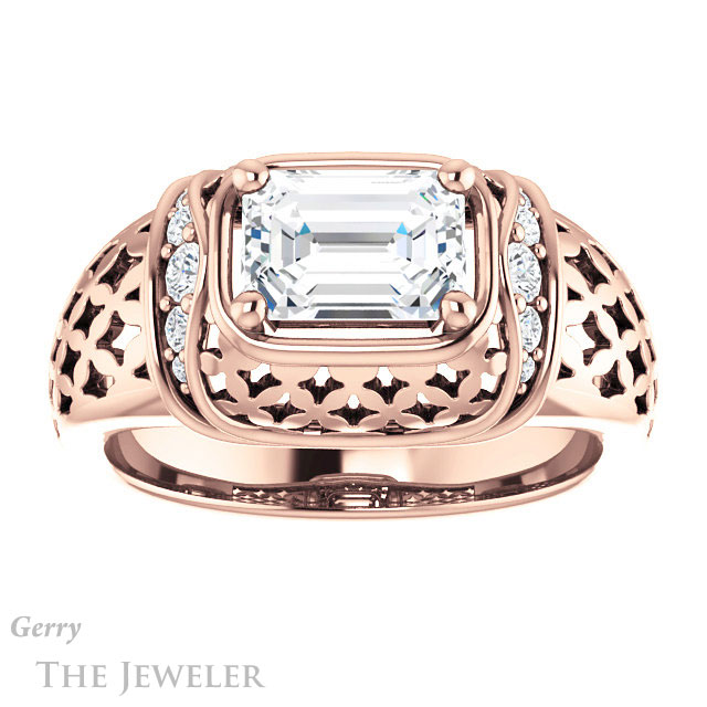 Emerald Cut Forever One Moissanite Engagement Ring #GTJ1186-emerald-fb-r