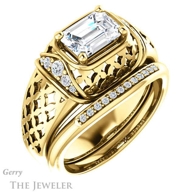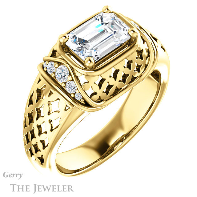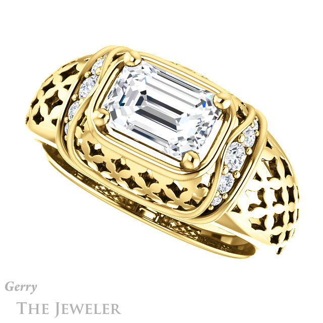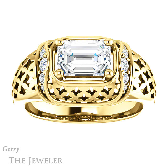 Emerald Cut Forever One Moissanite Engagement Ring #GTJ1186-emerald-fb-y
