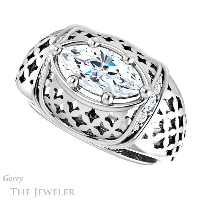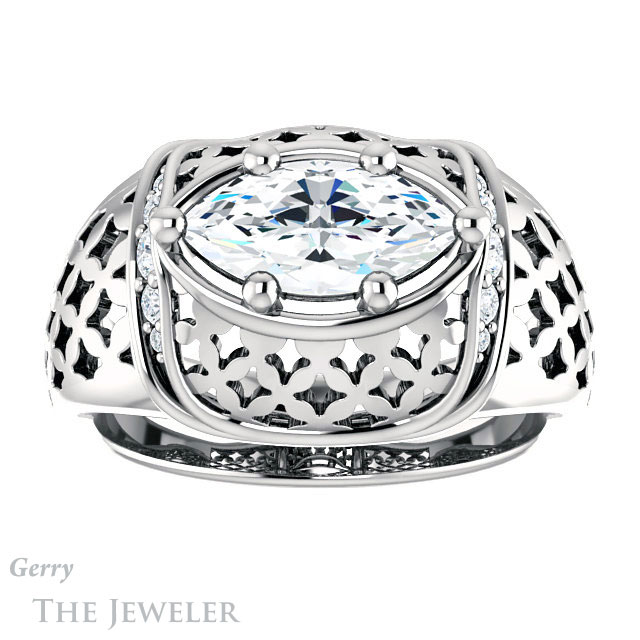 Marquise Cut Forever One Moissanite Engagement Ring #GTJ1186-marquise-fb-w