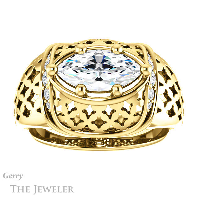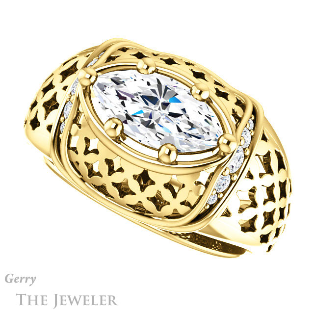 Marquise Cut Forever One Moissanite Engagement Ring #GTJ1186-marquise-fb-y