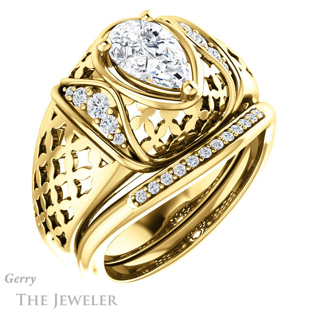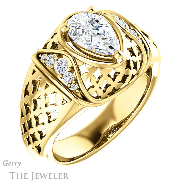 Pear Shaped Forever One Moissanite Engagement Ring #GTJ1186-pear-fb-y