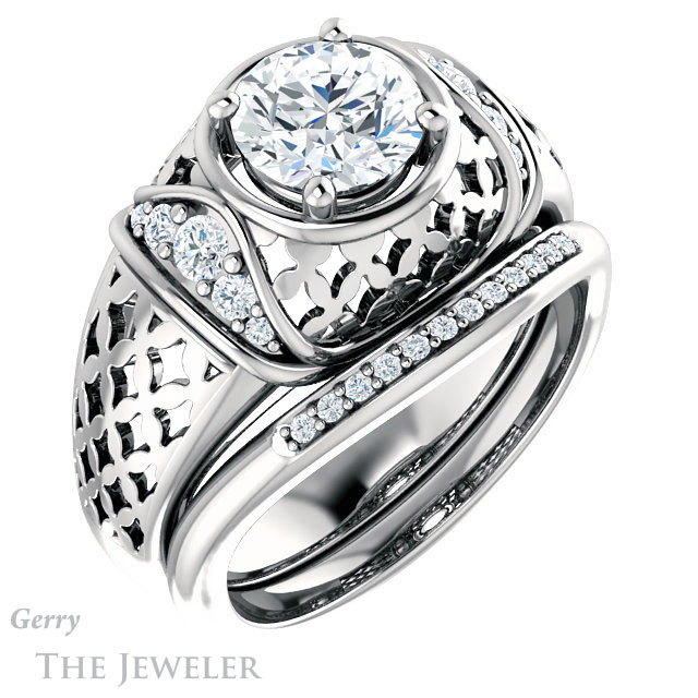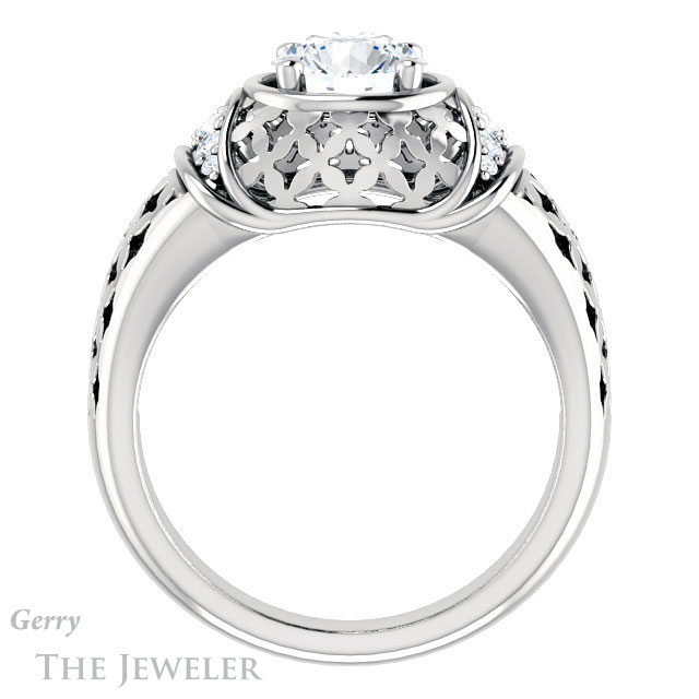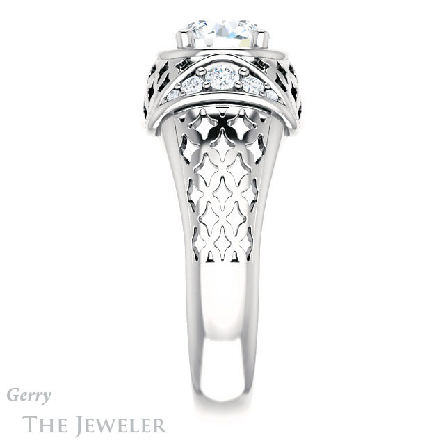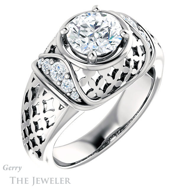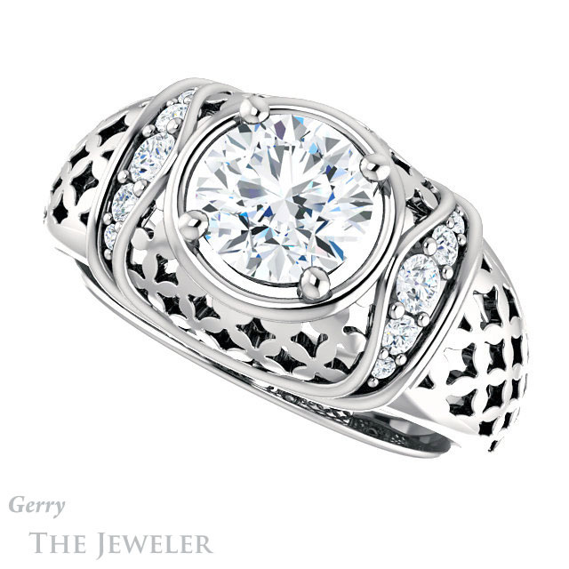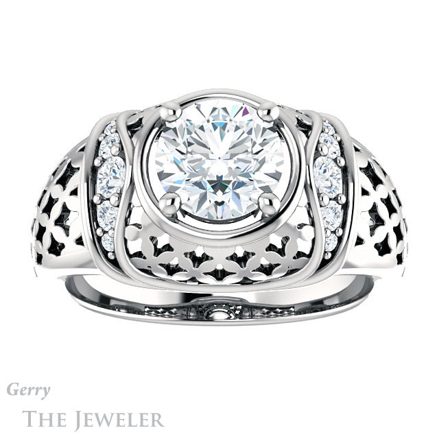 - This design can be set with your choice of certified lab grown diamond or moissanite center gem.Â