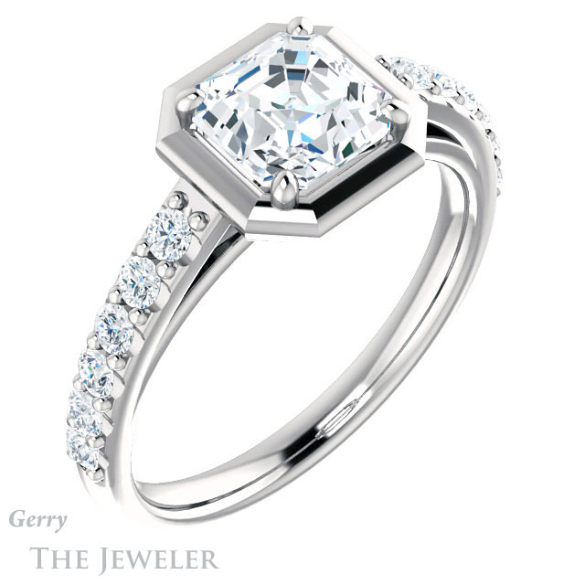 Asscher Cut Forever One Engagement Ring Setting #GTJ1187-asscher-fo-w