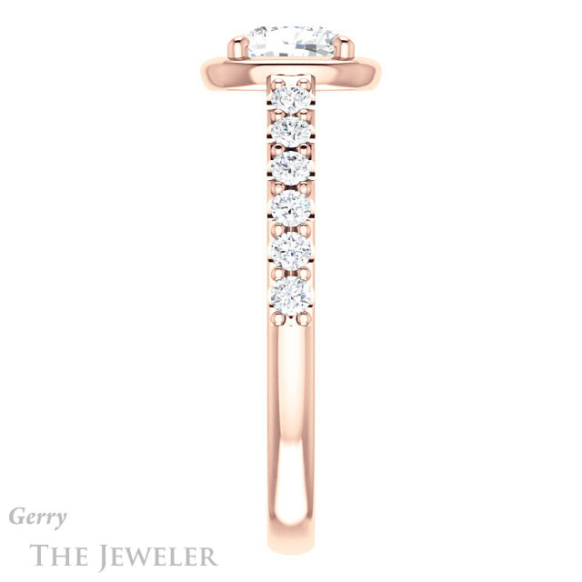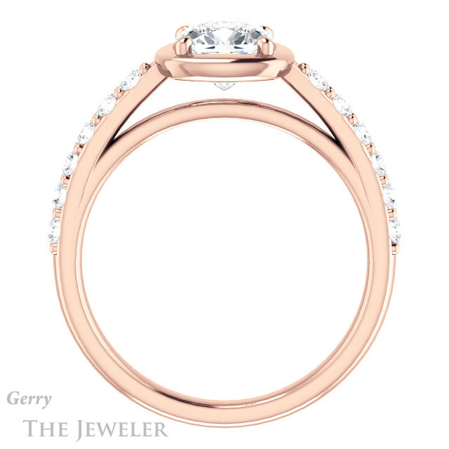 - This design can be set with your choice of certified lab grown diamond or moissanite center gem.Â