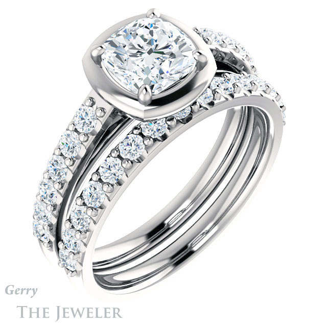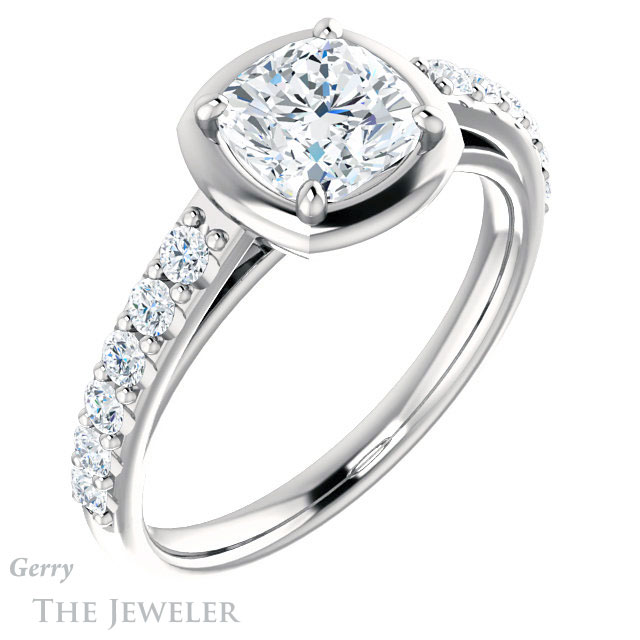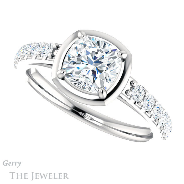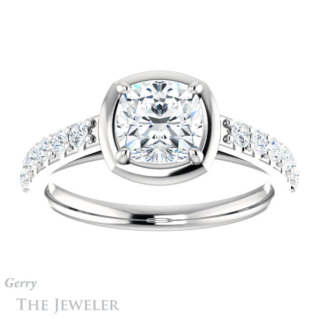 Cushion Cut Forever One Moissanite Engagement Ring #GTJ1187-cushion-fo-w