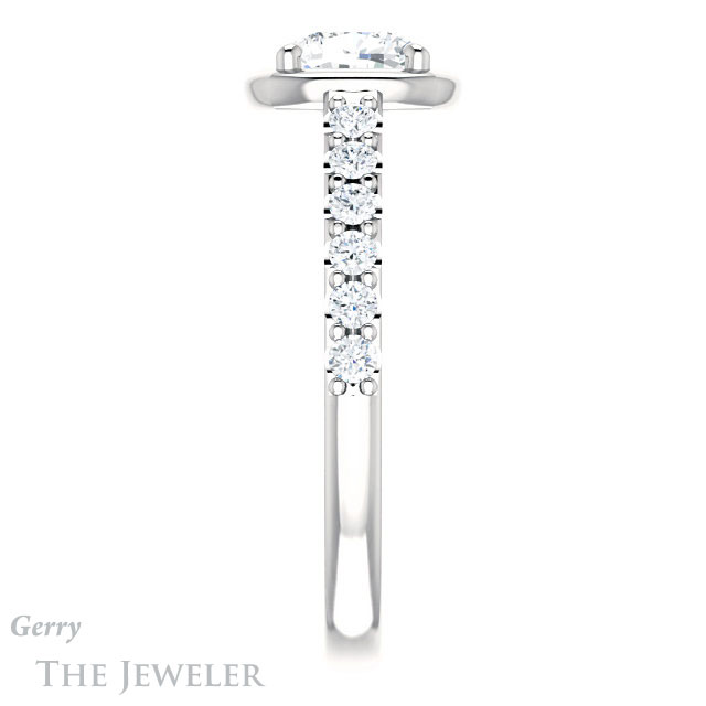 - This design can be set with your choice of certified lab grown diamond or moissanite center gem.Â