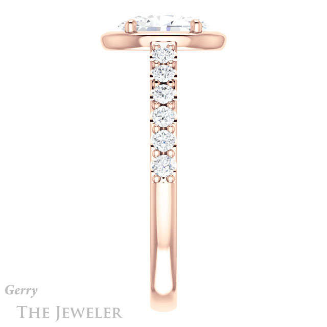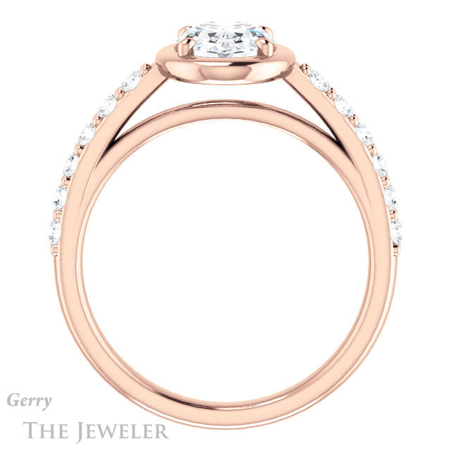 - This design can be set with your choice of certified lab grown diamond or moissanite center gem.Â