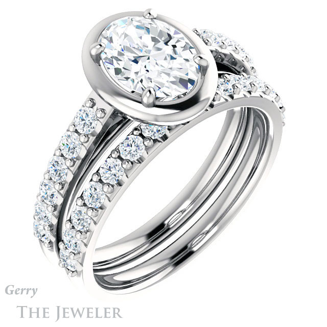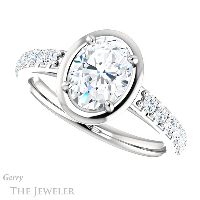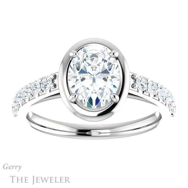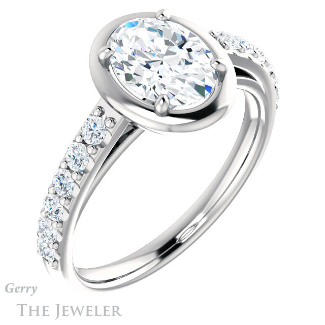 Oval Shaped Forever One Moissanite Engagement Ring #GTJ1187-oval-fo-w