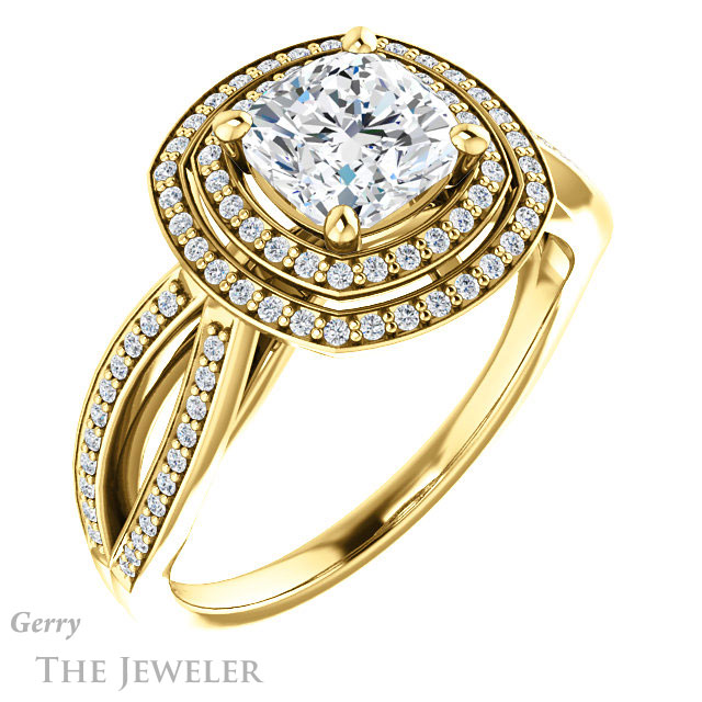 Cushion Cut Forever One Moissanite Engagement Ring #GTJ1188-cushion-fo-y