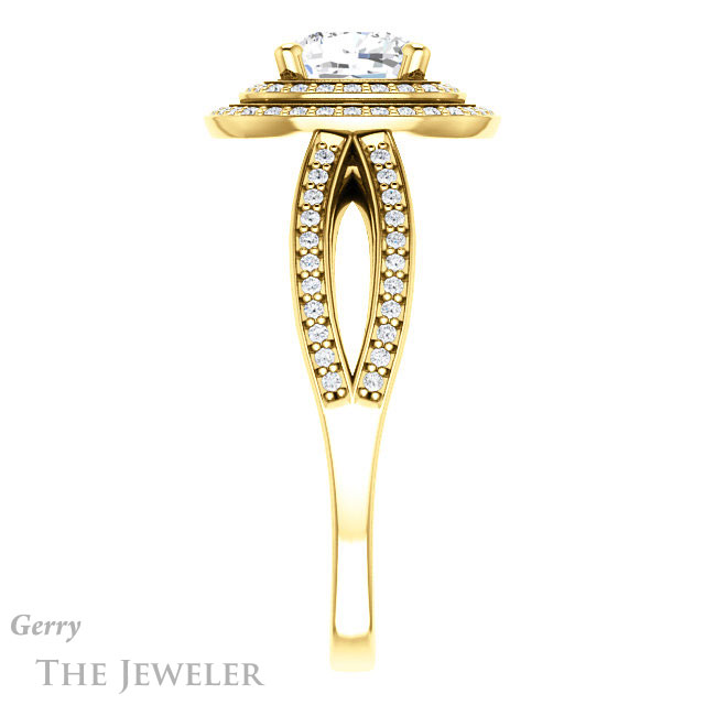 - This design can be set with your choice of certified lab grown diamond or moissanite center gem.Â