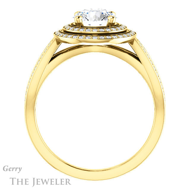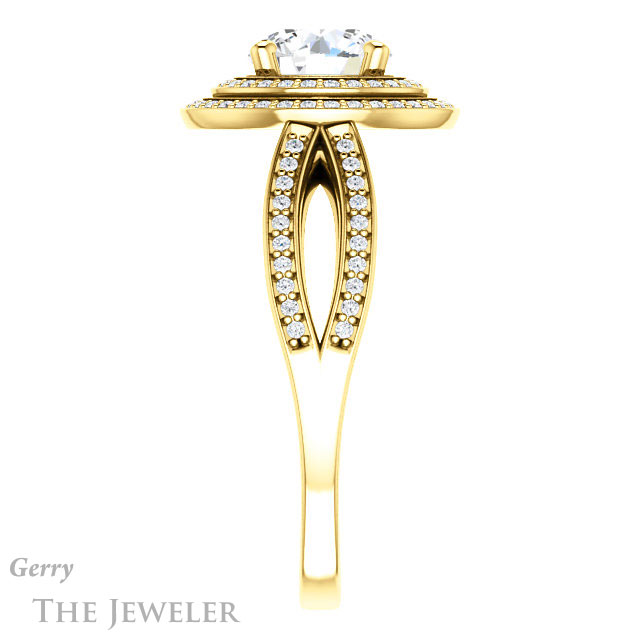 - This design can be set with your choice of certified lab grown diamond or moissanite center gem.Â