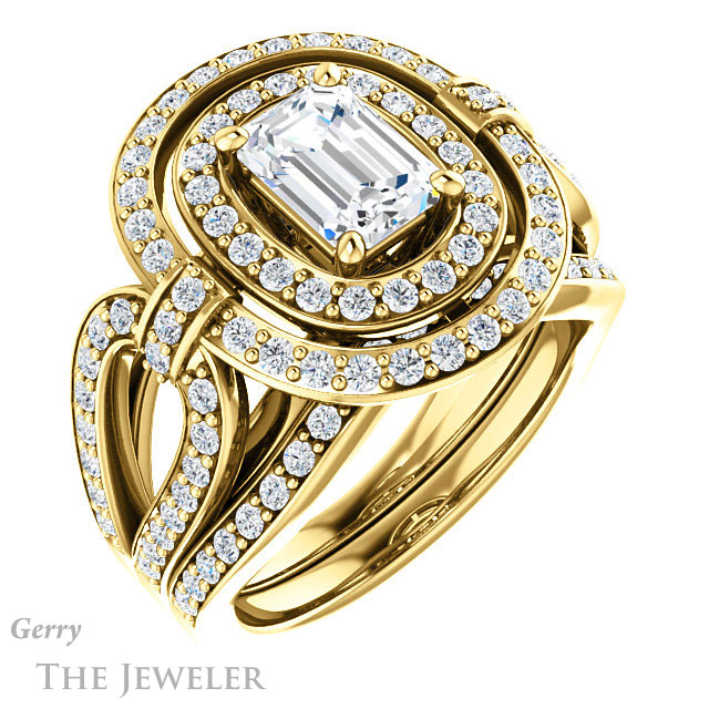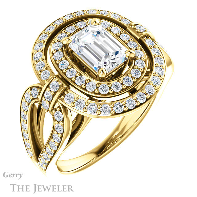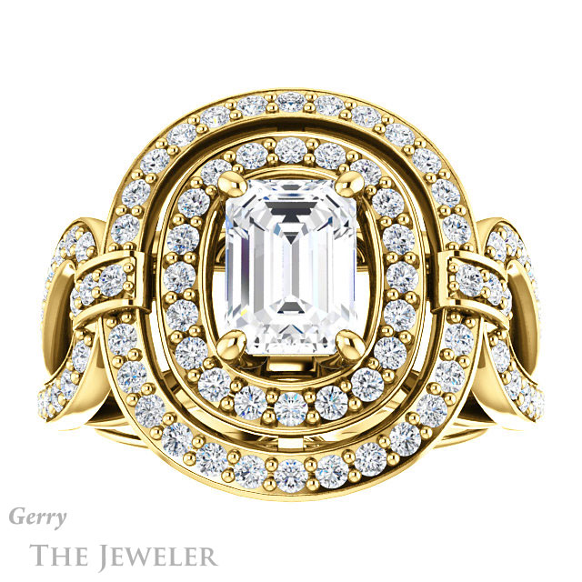 Emerald Cut Forever One Moissanite Engagement Ring #GTJ1189-emerald-fb-y