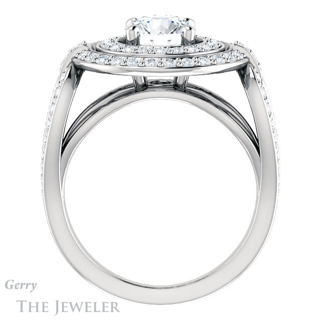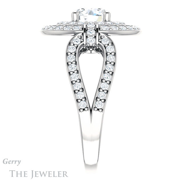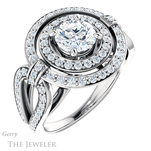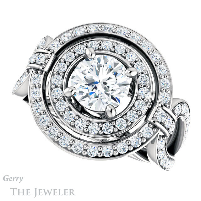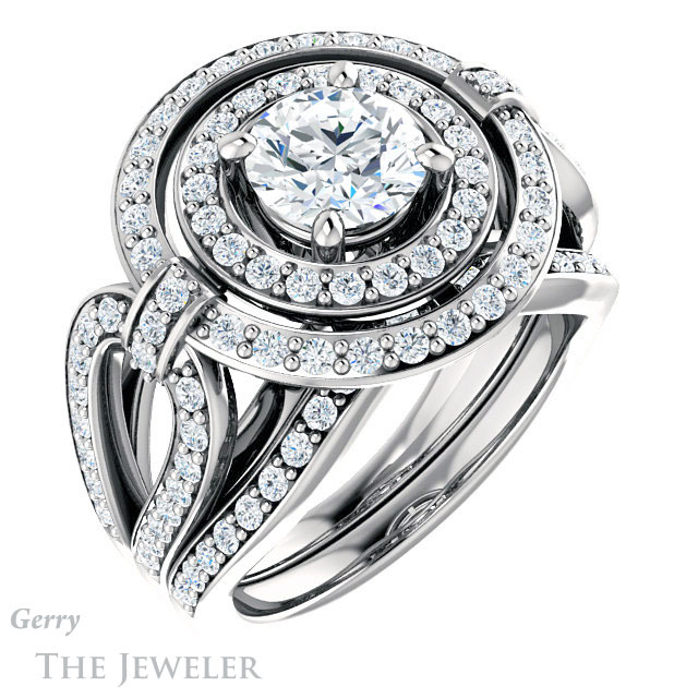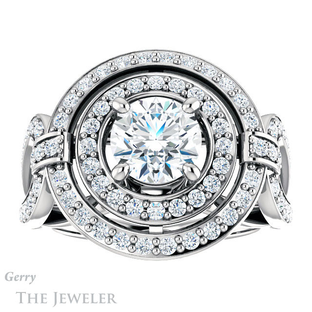 - This design can be set with your choice of certified lab grown diamond or moissanite center gem.Â