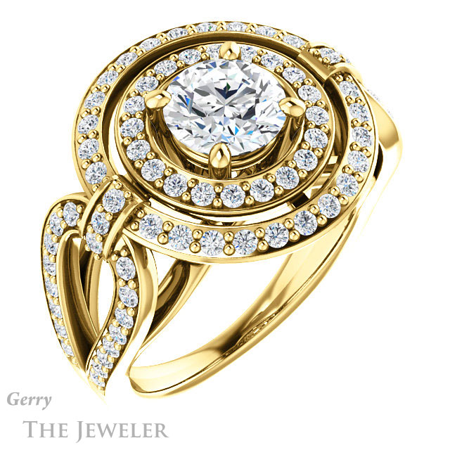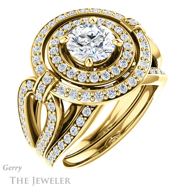 - This design can be set with your choice of certified lab grown diamond or moissanite center gem.Â