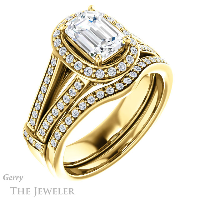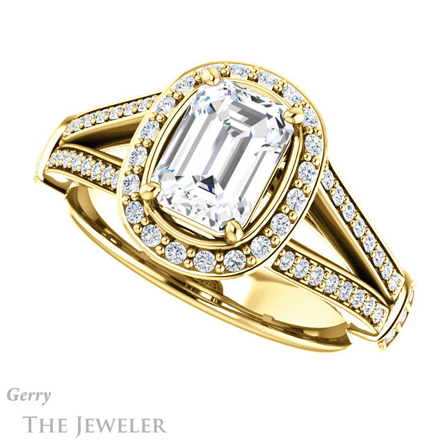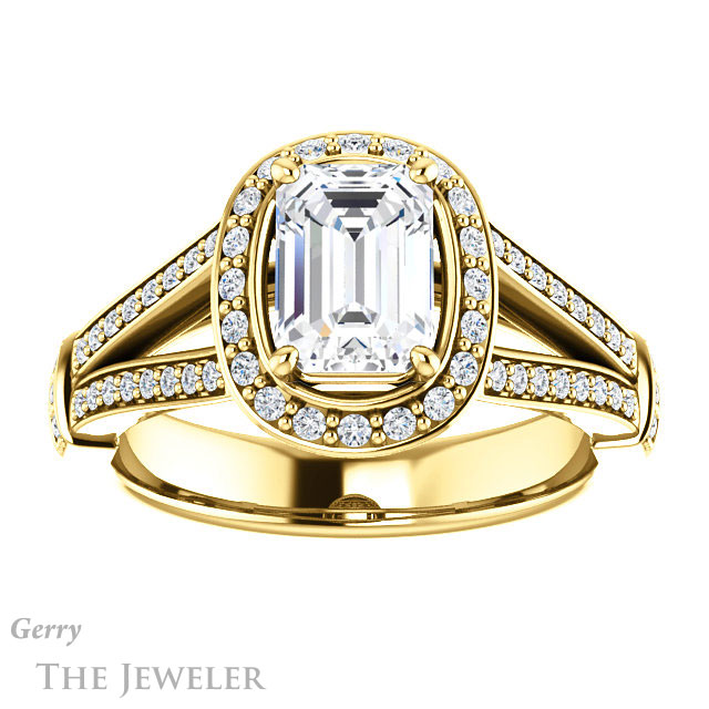 Emerald Cut Forever One Moissanite Engagement Ring #GTJ1199-emerald-fb-y