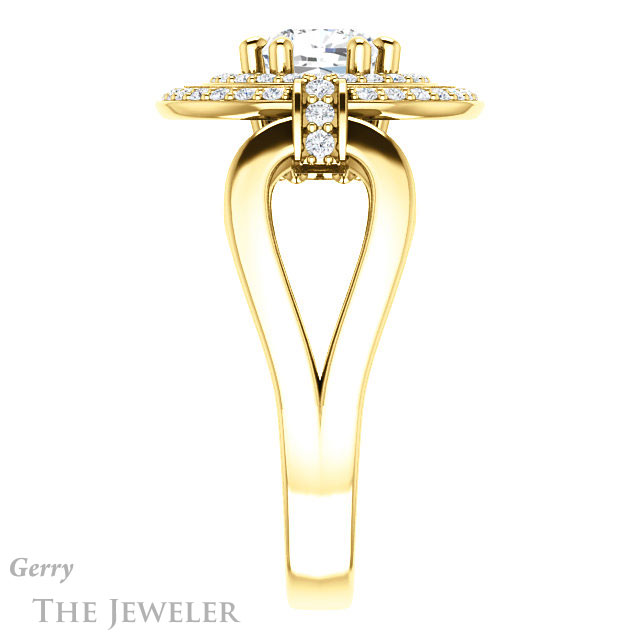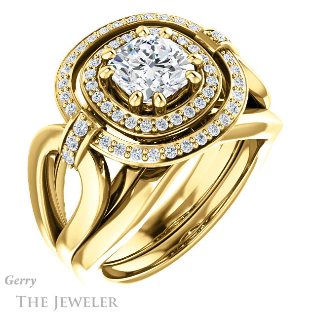 - This design can be set with your choice of certified lab grown diamond or moissanite center gem.Â