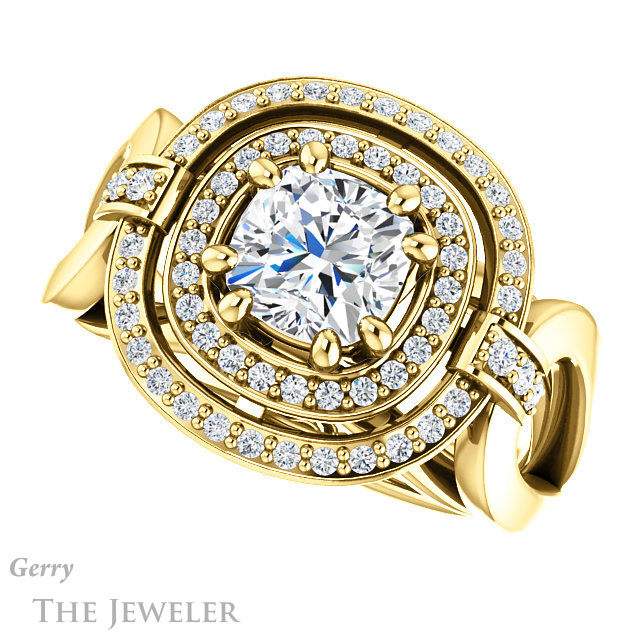 Cushion Cut Forever One Moissanite Engagement Ring #GTJ1204-cushion-fo-y