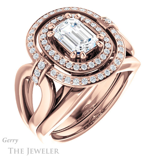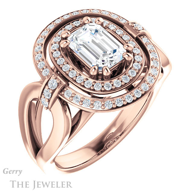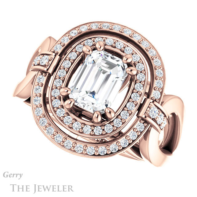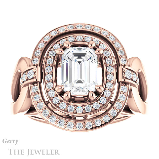 Emerald Cut Forever One Moissanite Engagement Ring #GTJ1204-emerald-fb-r